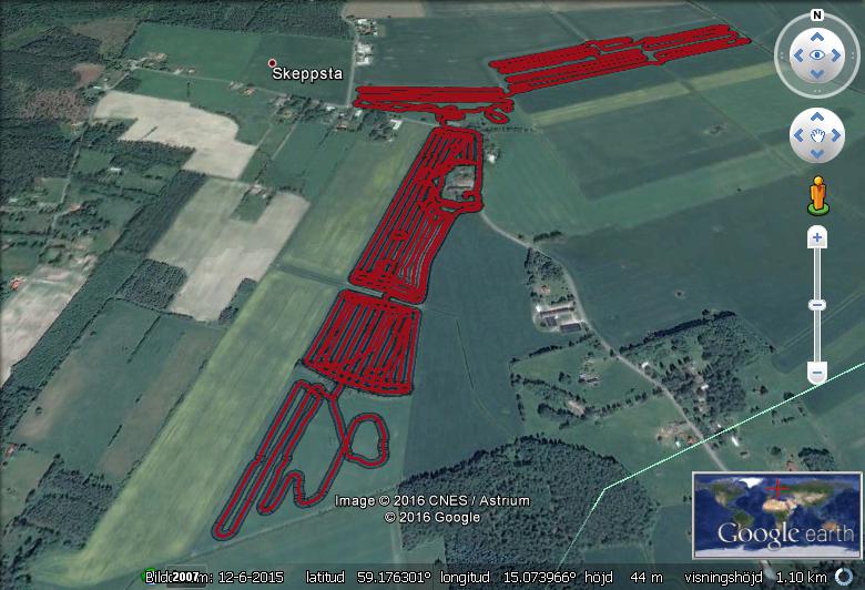 Körning på Google Earth karta med vägar hus och diken floder mm. Spara
