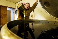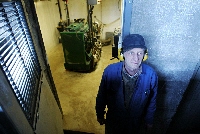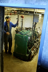 kylare. Johan Sönnerstedt pekar på lampan och elementen på