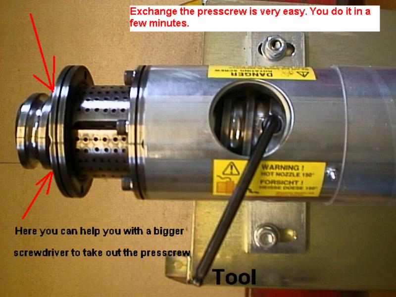 the presscrew is very easy look at : Picture1 Picture2 Seed cookie guard